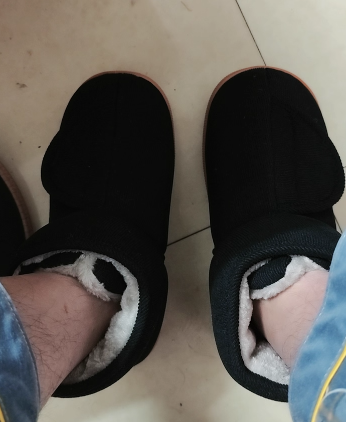 These slippers are comfortable, cozy, and easy to put on and take off. Velcro makes it easy to adjust for any foot. Perfect for someone who may have difficulty putting on footwear. They are lightweight and come in different colors. Used for indoors and has a good grip.
