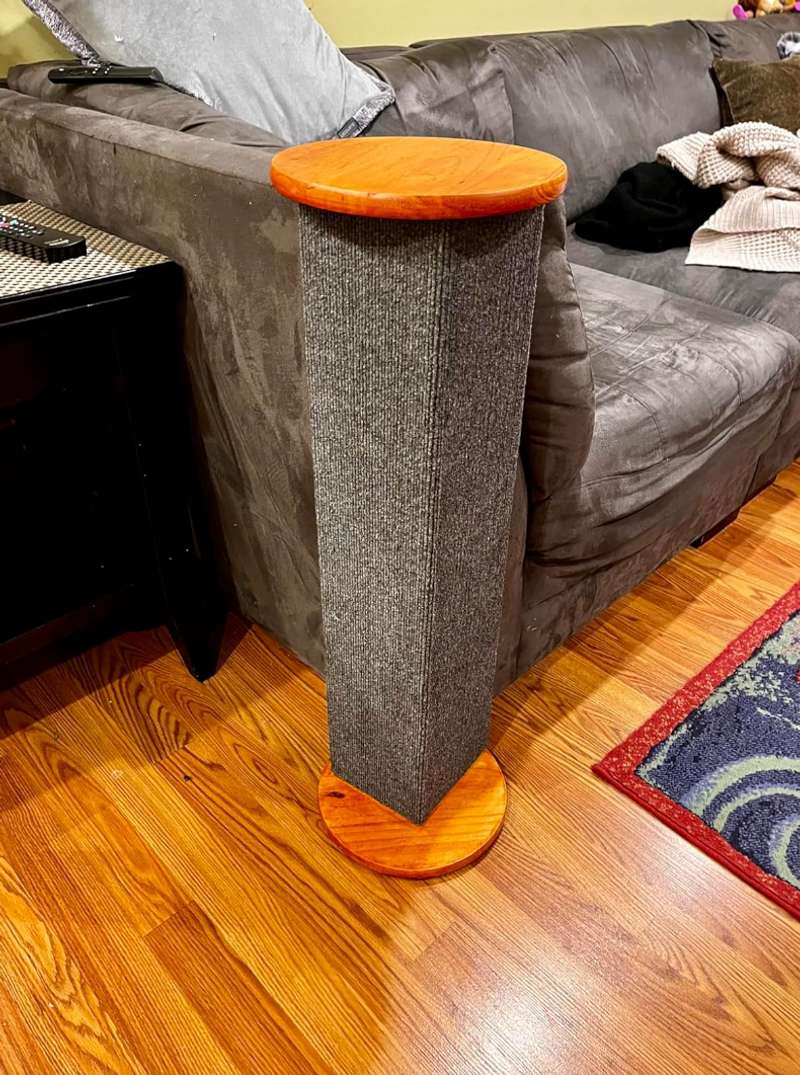 I build the corner scratching base for my cat and this product was exactly what I was looking for. It attached securely to the wood. Looks good too! Time will tell if it will hold up from cats use. So far all good!
