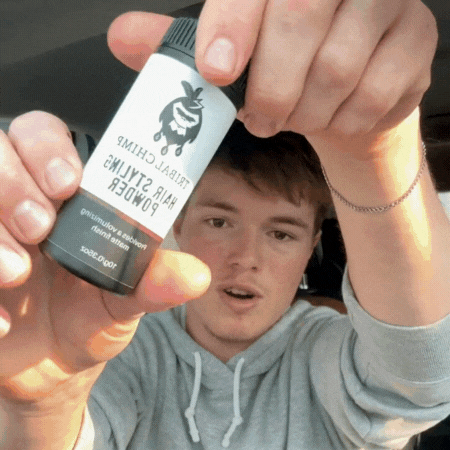 Step 1:Sprinkle a small amount of Tribal Chimp Hair Styling Powder directly onto your hair.